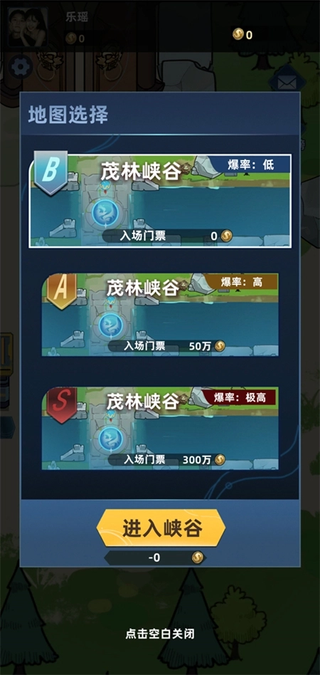 3、点击进入峡谷,选择要挑战的地图。