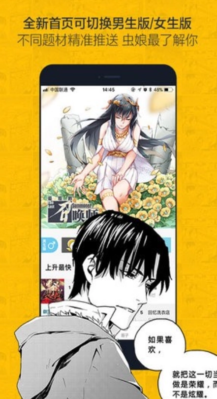 奈斯漫画,这是一款能为你推荐你喜欢漫画的app,进入app后,可以根据你的性别推荐你喜欢漫画的类型,如果还找不到你喜欢的漫画,可以去专门的社区去询问,会有人给你答案。还有一大特色,这款app能看韩漫哦。