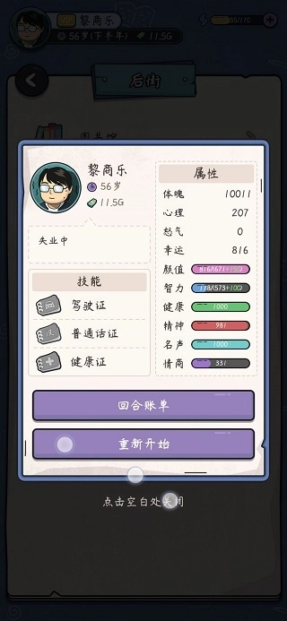中年失业模拟器一款非常现实的模拟经营手游,游戏开始后,你就失业了。这个时候你是艰难的,上小老,下有小,还要还房贷。为了生存下去,你要通过各种方式赚钱,赚钱的过程中会和很多npc互动,达成不同的结局,