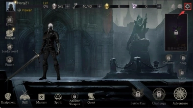 1. 来到游戏首页,轻点屏幕右上角的齿轮状设置按钮。