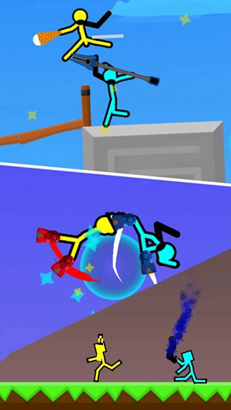 1、超爽的火柴人粉碎动作游戏,能挑选各类道具,结合不同关卡设计,实现最佳搭配,给火柴人造成海量伤害,趣味十足。