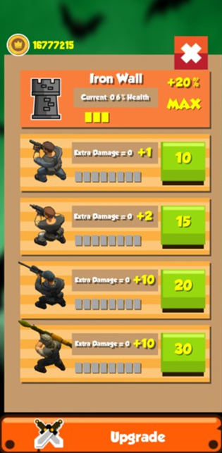 4、士兵也可以花费金币进行升级,提高他的火力。