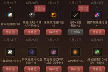 第三步:进入 DNF 助手十周年的每日签到福利界面。要领取该福利,需每日登录游戏。每日奖励各不相同,其中甚至有机会抽到 QQ 会员、黑钻以及 5 个装扮合成器,其他奖励则是常见的疲劳药和深渊派对挑战书。
