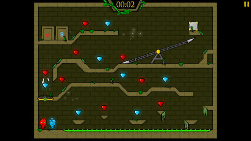 1、当两个冰火人各自站在一端的吊梯上,控制一端角色跳一下,由于惯性的作用,吊梯会缓慢倾向跳动的一端。