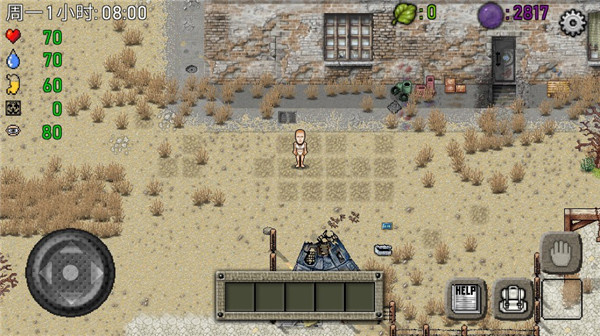 2、画面复古,玩法自由,没有任务限制,没有时间限制,但是你要随时注意自己的身体状态。