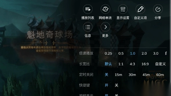 在播放过程里,点击菜单键便会弹出操作菜单。其中,“显示”这一项涵盖了常见的显示设置,像屏幕方向、触摸动作以及屏幕显示信息等。此外,用户能够对跳转时间间隔以及拖动支持的操作进行设置。