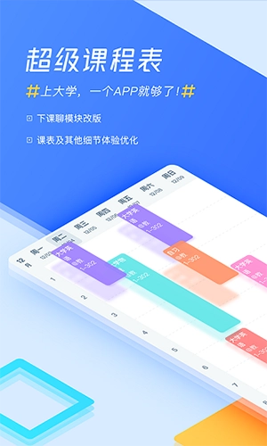 2025 最新版超级课程表,是广州超级周末科技有限公司研发的一款手机课程表软件。是不是常常想不起来上什么课,又在哪上课?别担心,超级课程表来帮你。只需这一个软件,就能帮你规划好学习计划。它具备众多实用功能,像查看课表、记录课堂笔记、查询成绩等等。不仅如此,软件还设有社交功能,助你结识同班同学,知晓大学新鲜资讯,一键操作,轻松掌握,确保自己总能第一时间收到各类重要信息通知。