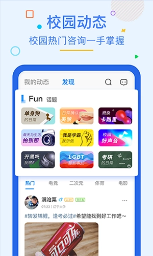 从校内到校外,从学校通知到校园活动。你感兴趣的校园资讯,都会马上搬运给你。校园生活,关注你想关注的。