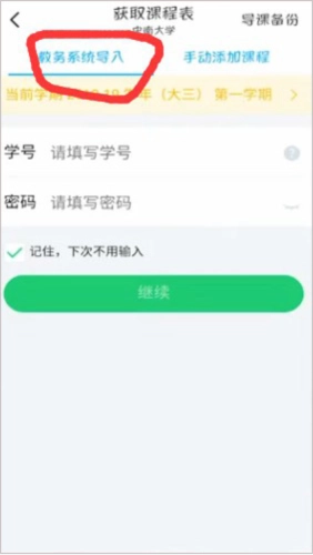 2、选择通过自己学校的教务系统,进行自动导入课程表;