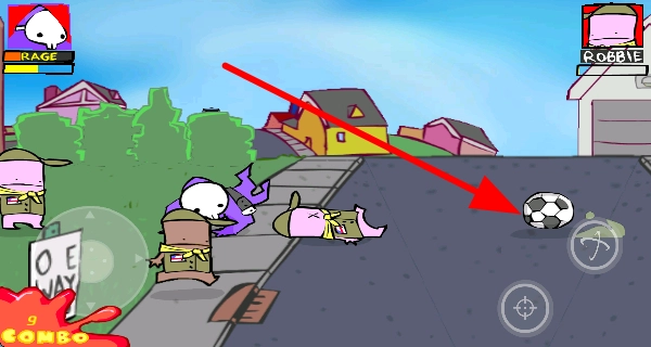 3、在不同场景里,可以使用地上的足球等攻击道具,拾取后使用,借助道具的效果,增强攻击能力。