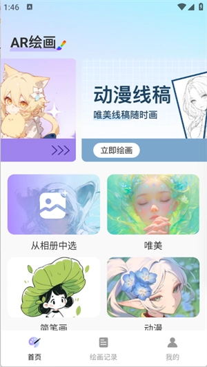 2、打开进入软件,在首页中可以看到许多的绘画素材