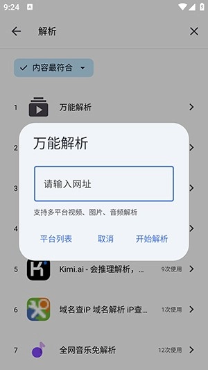 4、点击平台,可以查看支持解析的平台内容。