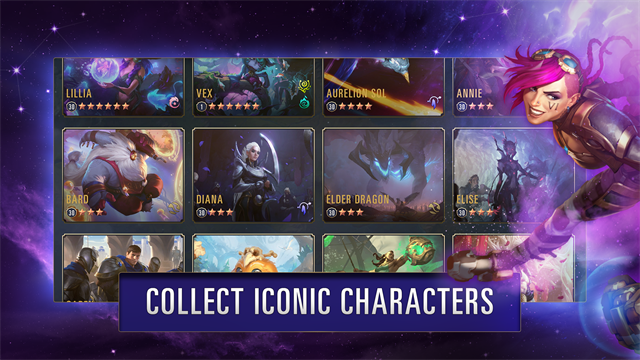 从英雄联盟出身的经典角色,以及来自符文大地世界的全新角色,皆以栩栩如生如生的精致细节,携手与你跃上战场。