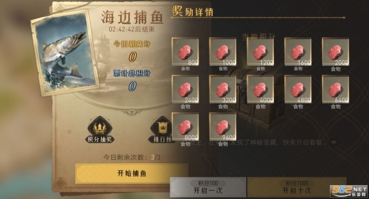 建设码头后,每日可开展3次捕鱼活动,所获积分能够用来抽取粮食奖励;加入联盟还能参与每日排行,从而一次性获得大量粮食。