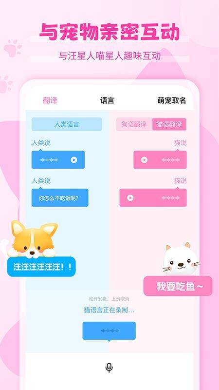 不同宠物的叫声都能转化为人语,随时在线的快速翻译也会让人更省心。