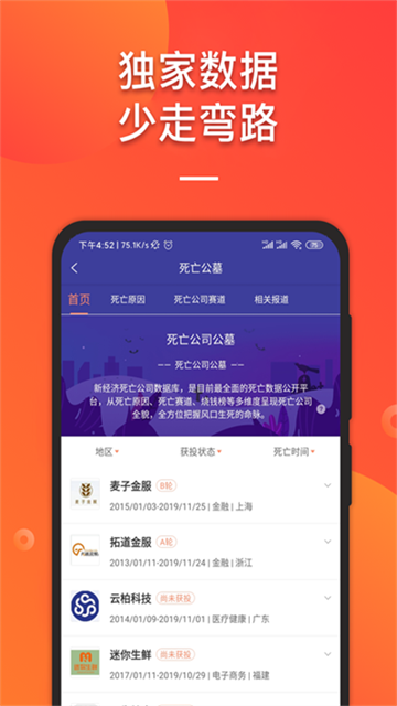 定制专题:中国独角兽列表、中国千里马列表、死亡公司列表等热门专题,动态实时更新