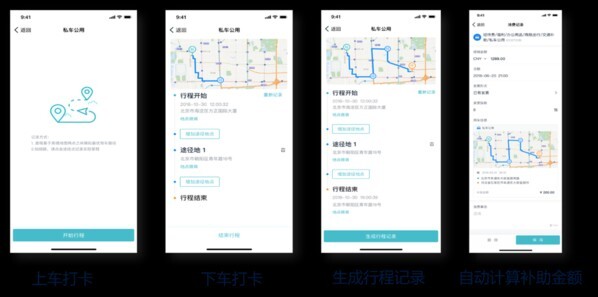 在首页找到“私车公用”选项并点击,接着选择“开始行程”就能启动行程记录;当行程结束时,点击“结束行程”按钮,系统会自动生成完整的行车记录,同时依据公司相关制度自动核算出对应的补助金额,至此整个行车记录流程就完成了。