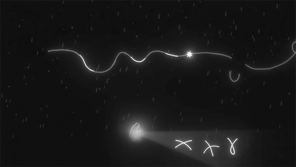2、点击提灯的人,灯光中会浮现出线条,使用这些灯光里的线条将上方的线条补全。