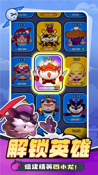 解锁英雄,组建精英四小龙!