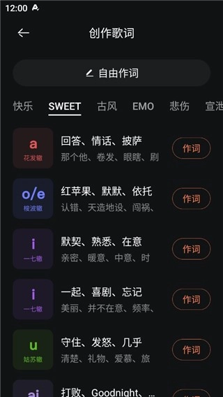1.拥有海量韵词储备库,让押韵创作变得轻松简单,不管是刚入门的新手还是经验丰富的资深词人,都能运用自如、游刃有余。