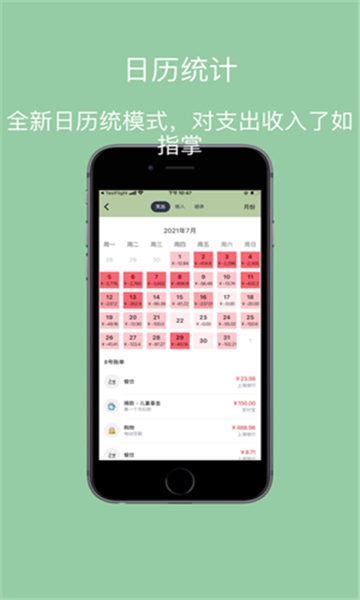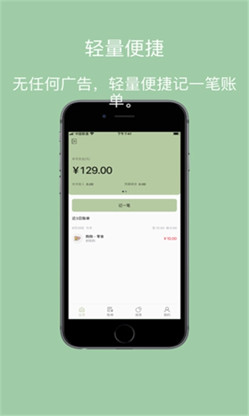 软件采用绿色清新的风格打造,带给用户舒适且便捷的记账体验