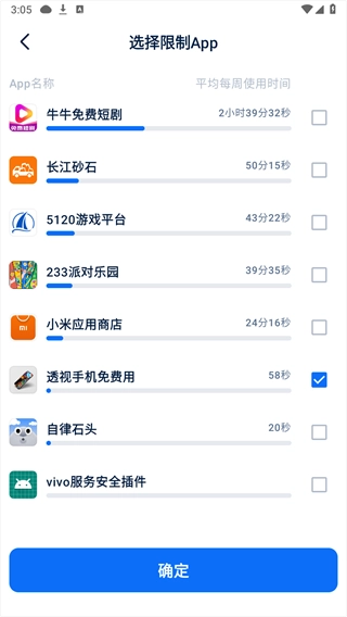 2、每一个需要限制的软件自律石头都会给出合理的运行时长。