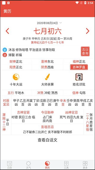 3、在黄历界面,可查看当天的宜与忌;