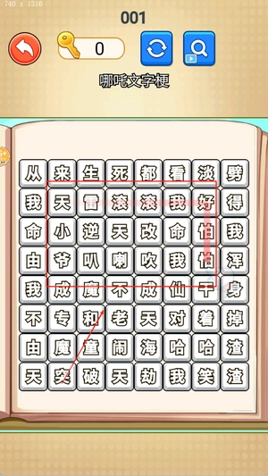 1、进入游戏后先挑选关卡难度,进入对应界面后留意文字的排列次序,依据提示推测可能的连线走向,拟定初步的规划。