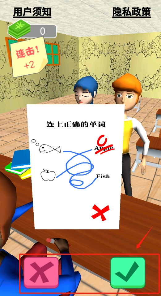 3、连线错误会出现红色叉号提示,赶紧重新连线答对就能得分哦。