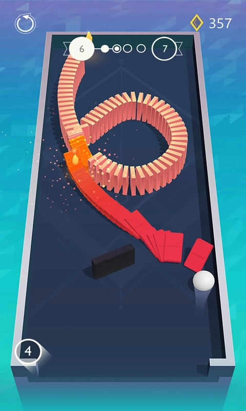 当小球撞上多米诺骨牌,骨牌便会一个接一个地倒下,与此同时还会掉落水晶奖励,等待你去收集。