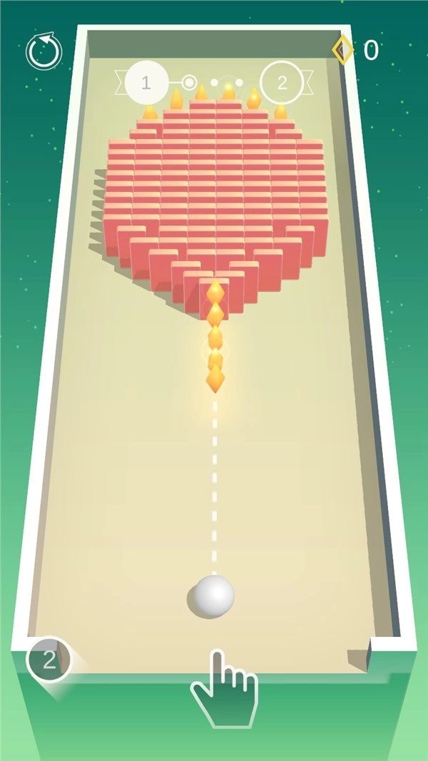 你的目标是让多米诺骨牌依次倒下,所以得把控好球的发射角度。