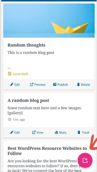 2、可以编辑任何博客文章或点击添加新按钮来创建新的博客文章。这将启动WordPress应用程序的内容编辑器。在这里,您可以使用手机的原生键盘写一个新帖子,底部有一个格式工具栏