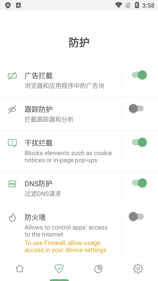 AdGuard能帮用户轻松拦截各类广告,软件里有多种不同等级的拦截模式供用户自由切换,用户还能通过设置等途径把需要的内容加入白名单过滤,AdGuard可为用户带来更舒适的手机使用体验。