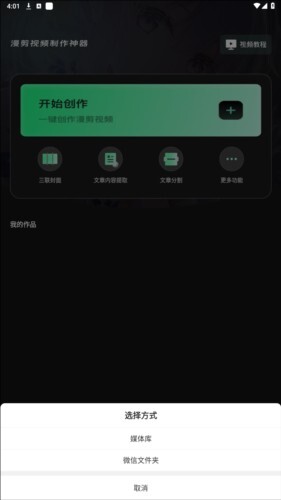 3、可以选择媒体库、微信文件夹中的视频进行导入;