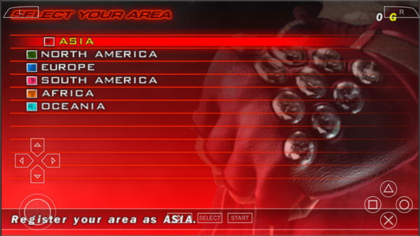 然后我们需要选择地区,可以使用左边的方向键进行选择,点击x进行确认。