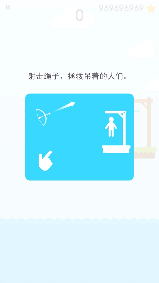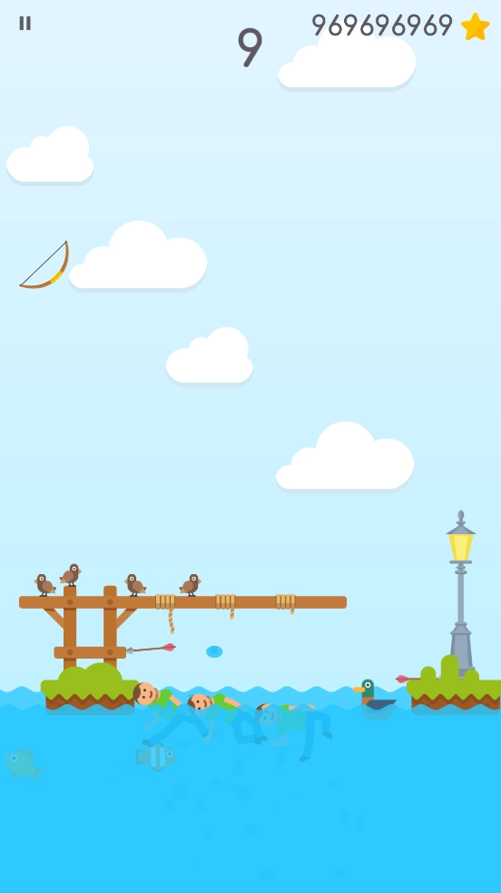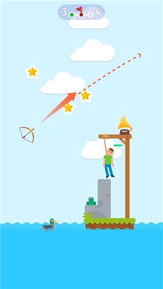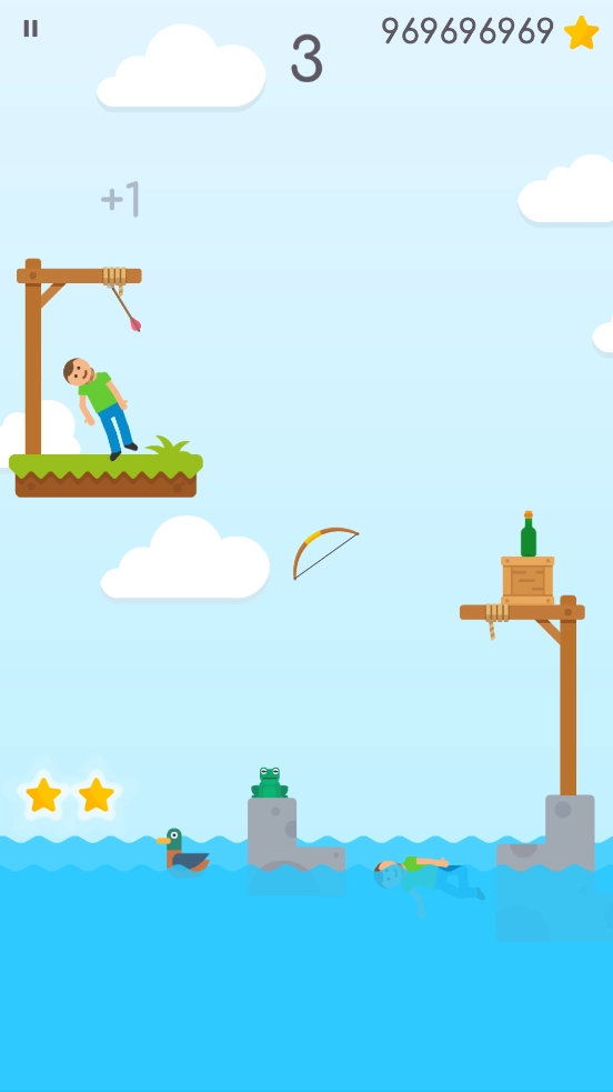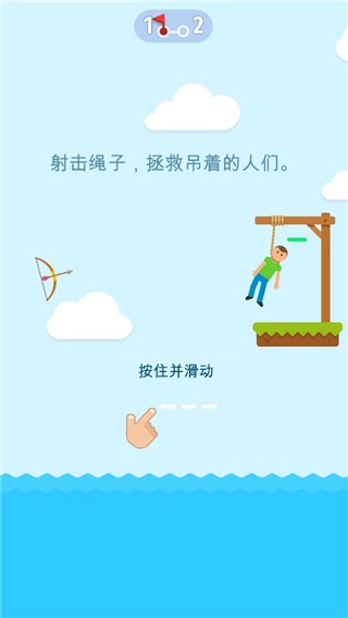 这是一款简单休闲的射击游戏,玩法就是射断人头上的绳子,注意别射到人就行。