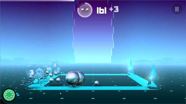 3、游戏里存在蓝色锥形、紫色菱形这类玻璃体,玩家把它们打碎后能得到数量不等的弹珠,借助这种途径来补充弹珠的数量,好让自己在游戏里能前进更长的距离。