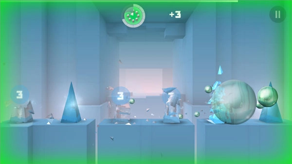 1、这部作品采用第一人称视角,玩家将在异度空间中飞行,需要持续投掷带有金属质感的弹珠来击碎阻挡前进的玻璃;因为命中率并非核心考核指标,所以命中的难度设置得并不高。