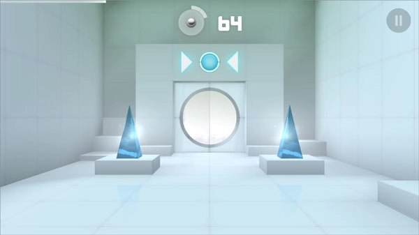 1、画面呈现游戏初始场景,简洁空间中水晶闪烁、圆形门矗立,顶部数字64醒目可见,共同营造出科幻静谧的独特氛围,精准搭建弹射冒险的起点,有力引导玩家开启弹珠冲击的流程。