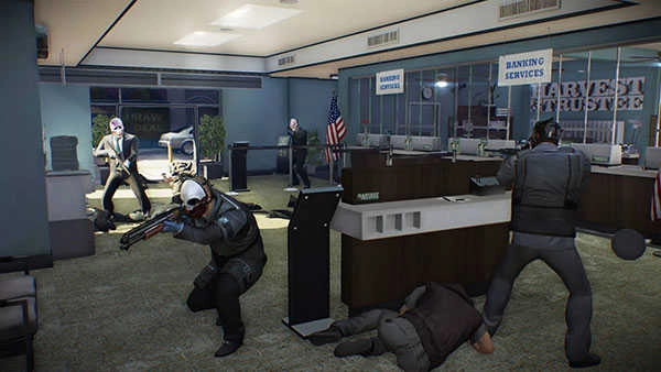 3、在这个满是射击战斗的世界中,你可以开启无敌模式,开启一场银行抢劫的冒险。