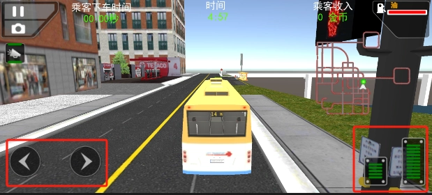 3、驾驶页面操作:进入正式驾驶界面后,找到控制大巴的图标,借助这些图标操控大巴前进、后退、转向等,在城市道路上安全行驶,并按规定站点停靠以方便乘客上下车。