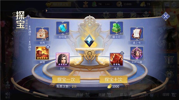 5、每天都可以获得免费招募机会,可以招募到英雄和道具,这是一个不错的机会,不要错过。