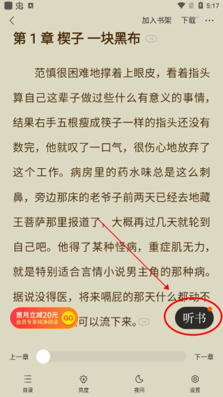 语音朗读功能有多种声音可供挑选,能满足你听书的需求,让双眼得到放松,不管何时何地都能听小说,还有大量免费小说可以听!