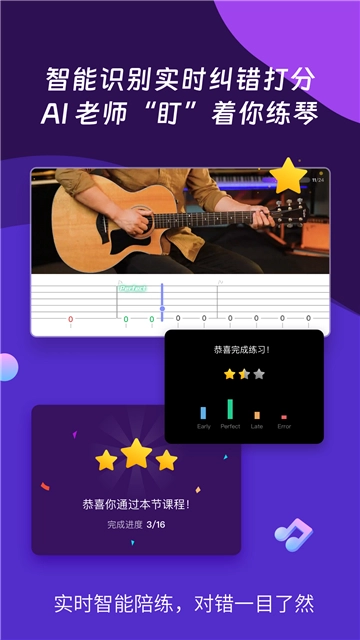 更有多种学习辅助工具:调音器、节拍器、和弦库等多种功能应有尽有。