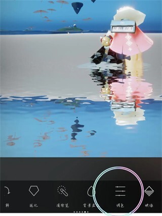 4、完成水面倒影效果,根据实际情况设置模糊、调色、样式等参数,点击对勾即可。