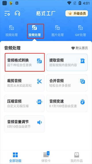 3、软件界面包括:视频处理、音频处理、图片处理等,这边拿音频处理功能为例。