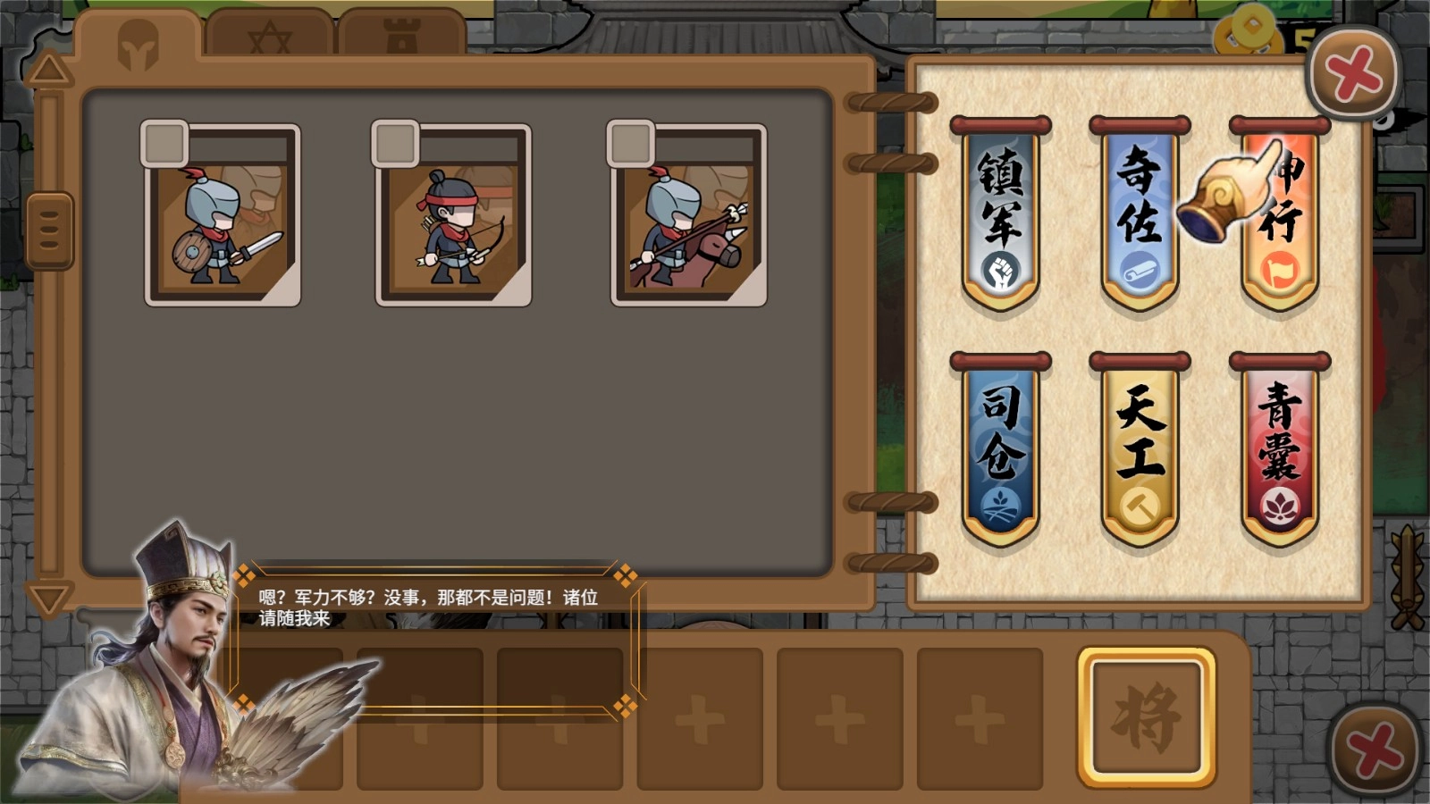 4、这是初始配置:步兵:弓箭手和骑兵;右边还有携带特殊技能的副将