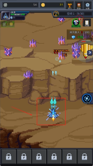 4、灵活控制战机躲避弹幕攻击,同时精准锁定目标发起反击,结合走位与火力输出完成每一波次的战斗任务。