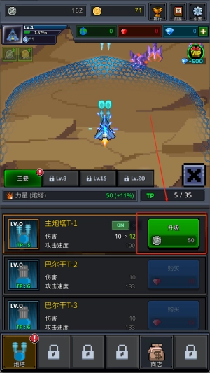 3、母舰炮塔可通过摧毁敌机获取资源进行强化与扩展,不断升级武器系统打造最强舰队迎接更高难度挑战。