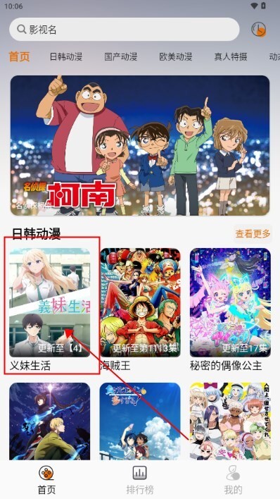 1、安装蓝猫动漫后,在这选择自己喜欢看的动漫,这里以义妹生活举例;